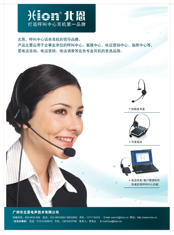 廣州市北恩電聲技術(shù)有限公司,成立于2003年,是呼叫中心專業(yè)耳機(jī)行業(yè)的領(lǐng)導(dǎo)者,產(chǎn)品全部來源于自主研發(fā),是集生產(chǎn)和銷售于一體,獨(dú)立的制造商和出口商。