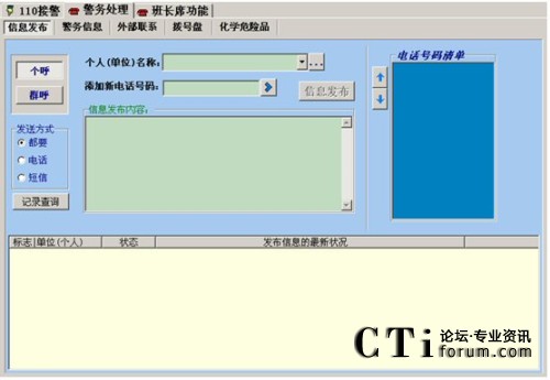 信息接收確認(rèn):但系統(tǒng)建立呼叫連接,并播放發(fā)布信息完畢;如果接收方按“#”字鍵,則系統(tǒng)確認(rèn)接收方已經(jīng)接收到中心發(fā)布信息。