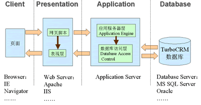 為了滿足移動(dòng)辦公和分布式管理的需求,CRM系統(tǒng)將更多采用基于Browser-Server架構(gòu)的多層結(jié)構(gòu)。B/S結(jié)構(gòu)的特點(diǎn)是在客戶端使用標(biāo)準(zhǔn)的Web頁面瀏覽器(如Internet Explorer等),不需安裝特殊的應(yīng)用程序,減少了升級(jí)和維護(hù)的難度;所有的業(yè)務(wù)數(shù)據(jù)都保存在Server端,確保了數(shù)據(jù)的安全;在通訊方面,由于使用標(biāo)準(zhǔn)的HTTP協(xié)議,使得系統(tǒng)可以輕松的實(shí)現(xiàn)移動(dòng)辦公和分布式管理。另外為了系統(tǒng)功能的可擴(kuò)展性,應(yīng)該采用將數(shù)據(jù)庫、應(yīng)用層及表現(xiàn)層分離的多層結(jié)構(gòu)。獨(dú)立的數(shù)據(jù)庫層便于支持多種數(shù)據(jù)庫系統(tǒng),將實(shí)現(xiàn)企業(yè)邏輯的應(yīng)用層獨(dú)立使業(yè)務(wù)邏輯的更新和擴(kuò)展更為方便,而當(dāng)需要支持手機(jī)、PDA等新的客戶端設(shè)備時(shí)只要對(duì)表現(xiàn)層進(jìn)行擴(kuò)充就可以實(shí)現(xiàn)。同時(shí),這種多層結(jié)構(gòu)也可以采用負(fù)載均衡與集群等技術(shù)實(shí)現(xiàn)系統(tǒng)的高可用性和性能的平滑擴(kuò)展。