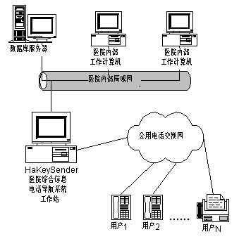 現(xiàn)有醫(yī)院的觸摸屏式導(dǎo)航系統(tǒng)只能局限到醫(yī)院內(nèi)部,如要內(nèi)外結(jié)合,不論是效益或影響力上,都將是很可觀的。HaKeySender醫(yī)院綜合信息電話導(dǎo)航系統(tǒng)正是基于這種考慮,利用現(xiàn)有比較發(fā)達(dá)的電話網(wǎng),跟蹤和吸收發(fā)達(dá)國家的先進(jìn)技術(shù),采用了計(jì)算機(jī)網(wǎng)絡(luò)技術(shù),數(shù)字信號(hào)處理技術(shù)以及多媒體技術(shù),開發(fā)出的智能HaKeySender醫(yī)院綜合信息電話導(dǎo)航系統(tǒng),為各醫(yī)療服務(wù)機(jī)構(gòu)提供了全面有效的解決方案。