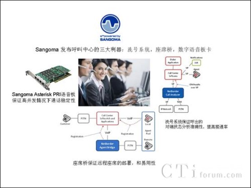 多年的北美通信市場和asterisk開源市場的磨練,和Sangoma產(chǎn)品通過在國際市場的經(jīng)驗,sangoma 發(fā)布的產(chǎn)品充分得到了呼叫中心國際廠商和asterisk 呼叫中心廠家的認(rèn)可,在洗號系統(tǒng),橋座席,語音板卡上面保證了呼叫中心的穩(wěn)定性,提高了呼叫中心的接通率,節(jié)省了座席遠程管理的成本。同樣,Sangoma 也非常希望分享Sangoma在國外市場的成果,把卓越的產(chǎn)品帶給呼叫中心的廠家和客戶。