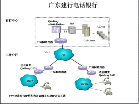 Center,其中珠海、揭陽、韶關(guān)、肇慶、梅州、陽江、潮州、云浮、河源、汕尾分行在華為2631上加8路Voice Gateway模塊提供8路話音接入,東莞、佛山、茂名、汕頭、清遠、中山、惠州、江門、湛江利用在華為2631上增加30路Voice
