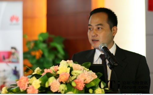 圖:華為軟件IPCC產(chǎn)品總監(jiān)王強(qiáng)“創(chuàng)造價值 成就客戶-華為新一代呼叫中心解決方案”精彩演講