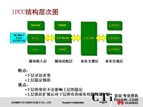 IPCC系統(tǒng)采用了獨(dú)立于各種接入媒體的設(shè)計(jì)結(jié)構(gòu),具有良好的開放性和可擴(kuò)展性。系統(tǒng)采用業(yè)務(wù)和交換分離的設(shè)計(jì)思想,業(yè)務(wù)層及業(yè)務(wù)支撐層從傳統(tǒng)的網(wǎng)絡(luò)中分離出來(lái),使業(yè)務(wù)實(shí)現(xiàn)層也具有良好的開放性和可擴(kuò)展性。