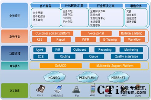 華為多媒體聯(lián)絡中心解決方案標準版采用的是基于華為NGN架構的下一代多媒體接入設備UAP3300,寬窄帶一體化設計,可接入PSTN/PLMN、NGN/3G網(wǎng)絡,符合長期演進要求。單臺可支持240座席,在6U的高度內(nèi)內(nèi)置寬窄帶中繼接入和錄音、放音、傳真等媒體資源處理能力,無需外置媒體服務器和中繼網(wǎng)關,并支持TTS和ASR功能。