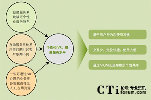 最終用戶可以提取常用業(yè)務定制自己的IVR菜單,減少語音提示和操作步驟,獲取服務更為準確快捷,提升了業(yè)務受理效率,降低了對系統(tǒng)的占用時間。自動業(yè)務流程隨著最終用戶對受理業(yè)務需求的變化,運行效率也會隨之變化,系統(tǒng)將對自動業(yè)務流程的所有節(jié)點進行跟蹤分析,根據(jù)效率最大化原則對業(yè)務節(jié)點進行排序和調(diào)整。這些細節(jié)的改進,可以最大限度地降低每次交互占用的時間,提升了客戶滿意度,降低了交互成本。