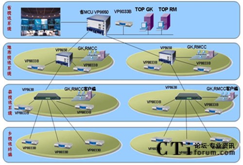 這是目前國(guó)內(nèi)最大的政府應(yīng)急視頻會(huì)議指揮系統(tǒng),現(xiàn)網(wǎng)可以借鑒的經(jīng)驗(yàn)很少,華為公司充分意識(shí)到該項(xiàng)目的重大意義,投入大量人力物力進(jìn)行網(wǎng)絡(luò)環(huán)境調(diào)研和客戶需求分析,經(jīng)過(guò)眾多專(zhuān)家和工程人員的反復(fù)論證,最終該套系統(tǒng)采取了分布式三級(jí)級(jí)聯(lián)組網(wǎng)結(jié)構(gòu)和四級(jí)分級(jí)分權(quán)管理模式,具有強(qiáng)大的備份能力和豐富的功能特性,在省和9個(gè)地市分別配置1臺(tái)8650MCU和1套管理軟件,在58個(gè)縣分別配置1臺(tái)8630 MCU,在1205個(gè)會(huì)議室分別配置1臺(tái)8033B終端。