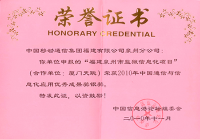 在本屆論壇上,由廈門天聰智能軟件有限公司與泉州移動(dòng)聯(lián)合研發(fā)成功的全國(guó)首創(chuàng)的聲紋識(shí)別親情電話系統(tǒng)(福建泉州市監(jiān)獄信息化項(xiàng)目)獲得“2010年中國(guó)通信與信息化應(yīng)用優(yōu)秀成果獎(jiǎng)”銀獎(jiǎng)。這一系統(tǒng)的研制成功,對(duì)司法系統(tǒng)的信息化建設(shè)與管理具有重大意義。