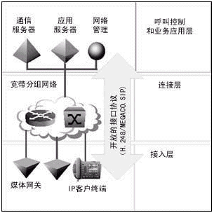 在接入層。各種媒體網(wǎng)關(guān)專職提供傳統(tǒng)終端的接入和與傳統(tǒng)網(wǎng)絡接口的功能,實現(xiàn)TDM與分組之間的轉(zhuǎn)換;新型的IP客戶終端則提供創(chuàng)新的、功能豐富的用戶界面。媒體網(wǎng)關(guān)和IP客戶終端還負責承載通道的建立功能,通過H.248/MEGACO、SIP等開放的接口協(xié)議在通信服務器和應用服務器的控制和協(xié)調(diào)下為媒體流建立滿足服務質(zhì)量要求的承載通道。