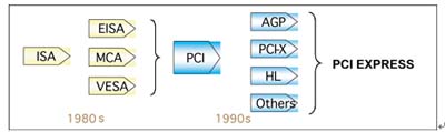 Bus及現(xiàn)在繪圖顯示卡所常用的AGP Bus。對開發(fā)廠商來說,卻增加產(chǎn)品的復(fù)雜度,于是在PCI問世十余年后,因為3D游戲及無線通訊應(yīng)用的興起,導(dǎo)致目前的PCI