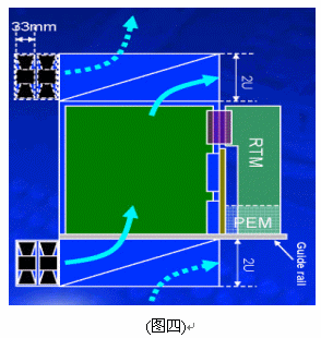 另外在機(jī)架內(nèi)的放置空間上,42U的標(biāo)準(zhǔn)機(jī)架里可以放3臺12~14U機(jī)箱,若將機(jī)箱降至10U則可以放置4臺,這樣可以增加整體空間的利用率,所以有了10U機(jī)箱的設(shè)計(jì)需求。在各種不同高度的機(jī)箱設(shè)計(jì)中,風(fēng)扇散熱系統(tǒng)的放置位置、方式與總散熱效能能夠達(dá)到200*14=2800W,將會是ATCA機(jī)箱設(shè)計(jì)所要考慮的最重要因素之一,尤其是在10U的機(jī)箱設(shè)計(jì)上。