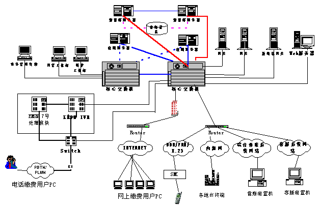 根據(jù)公司業(yè)務(wù)系統(tǒng)的組網(wǎng)方式,提供合適的解決方案,滿足需求,采用全省集中方式,具有以下特點:省中心建設(shè)語音處理系統(tǒng)和付費平臺業(yè)務(wù)系統(tǒng)集中在省中心;完全集中管理;完全支持全省漫游繳費;全省設(shè)備投資較少。