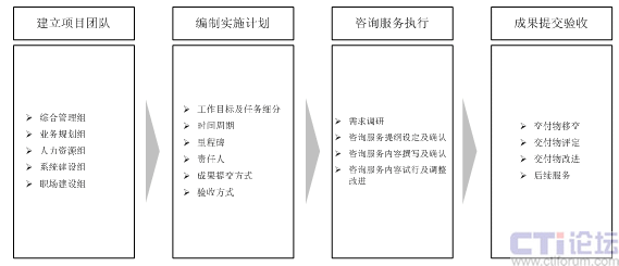 賽迪呼叫顧問(wèn)咨詢項(xiàng)目團(tuán)隊(duì)主要通過(guò)以下步驟來(lái)協(xié)助該銀行電子商務(wù)中心的建設(shè)工作順利完成。