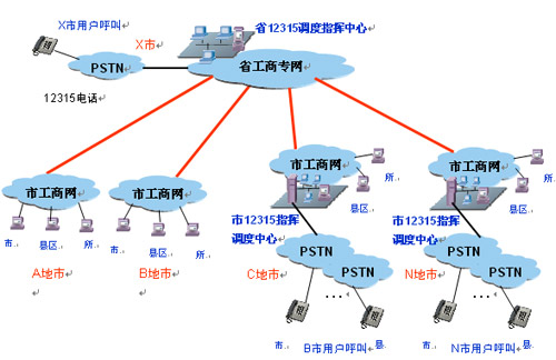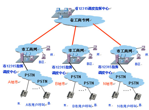 - 利用了國家公眾電信網(wǎng),實現(xiàn)全省12315信息網(wǎng)及消費者話音網(wǎng)絡的綜合高速公路。