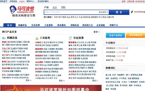 馬可波羅網(wǎng)隸屬北京搜斗士信息技術(shù)有限公司,成立于2006年,是全球最大的精確采購搜索引擎。馬可波羅按照格式化標(biāo)準(zhǔn)研發(fā)的多維精準(zhǔn)搜索系統(tǒng),首創(chuàng)電子商務(wù)精確廣告營(yíng)銷模式(B2B競(jìng)價(jià)排名),僅用了不到5年時(shí)間,即在B2B電子商務(wù)精準(zhǔn)采購搜索領(lǐng)域做到行業(yè)第一。