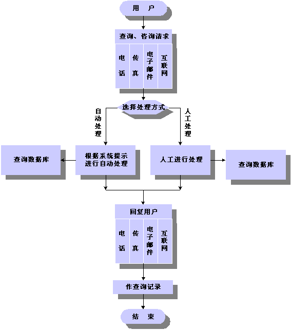 如:可開展信息咨詢業(yè)務(wù),為患者提供具體企業(yè)、事業(yè)單位的信息查詢,包括企業(yè)介紹、產(chǎn)品服務(wù)介紹、價(jià)格、功能、銷售地點(diǎn)、聯(lián)系電話、服務(wù)流程、辦事程序等。實(shí)現(xiàn)的方式包括口頭咨詢、語(yǔ)音服務(wù)、傳真服務(wù)、E-Mail等。系統(tǒng)對(duì)患者咨詢的反饋方式有:電話通知、傳真通知、人工回答、電子郵件。