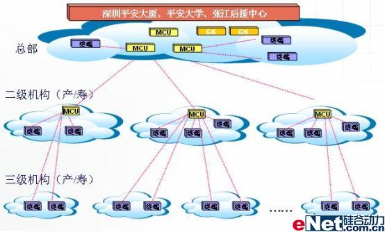 平安保險公司的視頻會議系統(tǒng)覆蓋公司產(chǎn)險、壽險、信托、銀行等各分支公司。從99年起,平安保險的視頻會議系統(tǒng)建設(shè)就未曾停滯過,至今年7月,已經(jīng)在產(chǎn)險和壽險兩大公司內(nèi)覆蓋至全國各地的三級機構(gòu),其他分公司也已經(jīng)覆蓋至全過二級機構(gòu)。公司全部使用POLYCOM視頻會議系統(tǒng)構(gòu)架其主要會議室,終端總數(shù)已超過四百臺,多點會議服務(wù)器(MCU)四十余臺,分布全國各地以及平安保險公司全球的各樞紐公司。預計至今年年底,平安保險的POLYCOM視頻會議系統(tǒng)將成為國內(nèi)最大的企業(yè)級視頻會議應用系統(tǒng)。