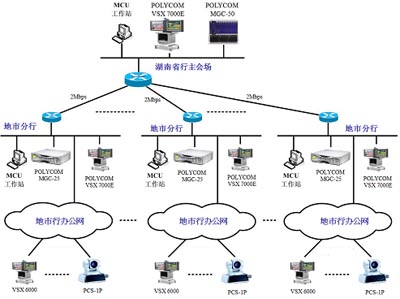 系統(tǒng)建成后,湖南省農(nóng)業(yè)銀行可以通過視頻會議,隨時召集全省包括各地市行、縣支行參加的會議,各地市行、縣支行也可通過該系統(tǒng)進行同其它縣支行的會議。利用該系統(tǒng)湖南農(nóng)行的領導可以發(fā)布指令,布置工作,中心會場可以遠程控制分會場的攝像頭,可以自動輪詢各分會場的畫面,可以召開單個會場演講模式會議,也支持自由討論模式的會議,最終達到從省到各下屬縣支行的行政管理、視頻會議、信貸審批和遠程培訓等一系列便捷的功能。