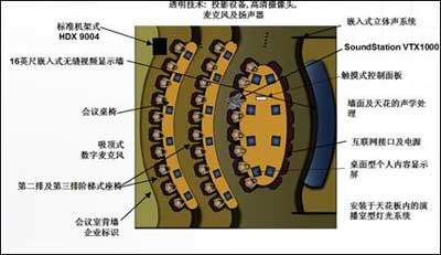 設(shè)計(jì)的獨(dú)具匠心之處還在于投影設(shè)備和攝像頭采用了分離的隱密安裝方式,因而所有與會(huì)者都完全呈現(xiàn)在屏幕上,不受任何限制地與各方交流。另外,由于采用整體環(huán)境設(shè)計(jì),從地面到天花板均采用預(yù)制結(jié)構(gòu)和現(xiàn)場(chǎng)安裝,絕大多數(shù)情況下,系統(tǒng)安裝不需要特別的許可證,同時(shí)會(huì)議室的全部設(shè)施也可以隨企業(yè)遷址而重新安裝。