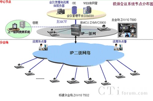 為此,中興通訊選擇了ZXMVC8900基于電信級(jí)交換機(jī)架構(gòu)的MCU,而會(huì)場(chǎng)終端根據(jù)樂(lè)山地稅局的要求,我們分別采用ZXV10 T600 高清視頻終端,ZXV10 T502標(biāo)清終端。全兼容智能視訊服務(wù)器ZXMVC8900采用電信交換機(jī)架構(gòu)設(shè)計(jì),全面支持ITU-T H.323、H.320協(xié)議,可通過(guò)不同網(wǎng)絡(luò)(IP、ISDN、DDN、SDH、ATM、衛(wèi)星等)接入用戶終端,并組織召開(kāi)視頻會(huì)議,具有全兼容各種網(wǎng)絡(luò)、支持DVD級(jí)高清會(huì)議、支持H.264編解碼協(xié)議、H.460防火墻穿越、H.235加密、H.239雙視頻流、T.140短消息橫幅、終端主叫呼集等先進(jìn)技術(shù),最高支持8M帶寬和4CIF圖像分辨率,為用戶提供DVD級(jí)的高清晰會(huì)議體驗(yàn)。采用單插板設(shè)計(jì),在將來(lái)需求增加的時(shí)候可以通過(guò)增加板卡最大擴(kuò)展至192路,充分保護(hù)用戶投資。ZXV10 T600是中興通訊推出的新一代分體式雙模高清視頻會(huì)議終端,支持1080P,720P高清編解碼和8M會(huì)議帶寬;支持H.320和H.323雙協(xié)議、藍(lán)牙技術(shù)、H.460防火墻穿越、H.235加密、H.239雙視頻流、T.140短消息橫幅、終端主叫呼集等最新技術(shù)。
