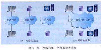 技術(shù)上的融合與結(jié)合是指中繼線、交換機、有線鏈路、無線鏈路、客戶設(shè)備等可承載各種類型的業(yè)務。