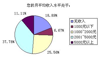 以上選擇中,選擇答案A~E的被訪者比例分別為18.89%、6.67%、25.56%、37.78%和11.11%,也就是說(shuō)我們這次調(diào)查的重頭是放在一般收入水平和無(wú)收入(學(xué)生)兩類人群,這兩個(gè)人群也正是SMS市場(chǎng)上最活躍的分子。高收入和低收入人群要么因?yàn)橘Y金充裕而選擇語(yǔ)音業(yè)務(wù),要么就是因?yàn)橘Y金的缺乏而盡量不使用移動(dòng)通信方式。