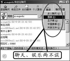 5、夢(mèng)幻尋呼(DICO):郵件群發(fā)功能;豐富的插件使得我們可以聊天娛樂兩不誤(如圖6);方便清晰的語(yǔ)音聊天功能——能夠穿透防火墻,達(dá)到電話的音質(zhì)效果;個(gè)人Web服務(wù)——可以把你的個(gè)人電腦輕松設(shè)置成一個(gè)Internet