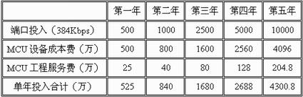中國網(wǎng)通CNC視訊運營網(wǎng)絡在建網(wǎng)成本上主要考慮四個部分。一是視訊交換平臺MCU部分,主要用于多點視頻通信;二是視訊運營支撐系統(tǒng),包括各種運營所必須的軟件(網(wǎng)管、業(yè)務受理中心、業(yè)務管理中心)及相應的硬件服務器;三是 H.323 視訊系統(tǒng)的關(guān)鍵組件GK軟件及相應硬件服務器,其容量和個人視頻通信業(yè)務的發(fā)展情況息息相關(guān);四是投入資金利息。具體可細分如下:
