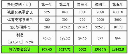 綜合上面三部分成本構(gòu)成,得出從系統(tǒng)建設并開始運營的頭五年中,各個年份建網(wǎng)資金投入和總投入: