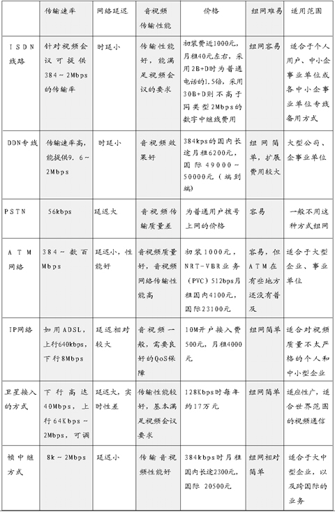 對(duì)于通信量較少、通信時(shí)間較短的用戶,選用ISDN的費(fèi)用遠(yuǎn)低于租用DDN專線或幀中繼電路的費(fèi)用,而且具有速率高、投資少、聯(lián)網(wǎng)方便等特點(diǎn),能滿足基本會(huì)議電視系統(tǒng)的應(yīng)用要求。但全國ISDN網(wǎng)絡(luò)還處在不斷升級(jí)階段,可靠性和穩(wěn)定性相對(duì)于專線方式還有不足。
