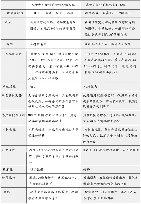 專用硬件與純軟件的視頻會(huì)議系統(tǒng)