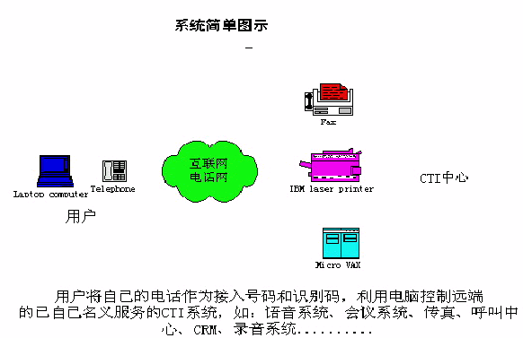 利用用戶現(xiàn)正使用的電話,利用呼叫轉(zhuǎn)移功能與CTI中心連接,為用戶提供以用戶為中心的、個性化的語音服務(wù)系統(tǒng)。以此增加電信增值業(yè)務(wù),提高電話的有效接通率,提高電信運(yùn)營商的效益。