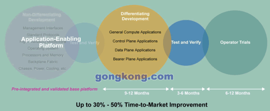 摩托羅拉將這種預(yù)集成并驗證的基礎(chǔ)平臺稱之為面向應(yīng)用的平臺,采用這個方式可以極大的加快進入市場的速度,使TEM專注于開發(fā)自己產(chǎn)品的差異化功能與內(nèi)容;跇(biāo)準(zhǔn)的平臺同時具有豐富的核心能力,從硬件,OS到高可用中間件與管理接口,它不是為單一應(yīng)用而設(shè)計,而是為廣闊市場準(zhǔn)備的通用平臺。