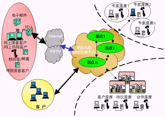 電信運(yùn)營(yíng)商提供的用戶(hù)、客戶(hù)、電信公司的統(tǒng)一的聯(lián)系平臺(tái),各類(lèi)客戶(hù)通過(guò)使用聯(lián)系平臺(tái),向其用戶(hù)提供方便的、不受時(shí)間、地域和媒體的限制的"3A"級(jí)聯(lián)絡(luò)服務(wù),用戶(hù)、客戶(hù)、電信平臺(tái)間的聯(lián)絡(luò)能得到有效路由、管理、品質(zhì)保障;聯(lián)絡(luò)中心通過(guò)將分布在各地、各種媒體、各種形式的資源整合在一起實(shí)現(xiàn)客戶(hù)服務(wù)增值,創(chuàng)造無(wú)限商機(jī),有效提升客戶(hù)聯(lián)絡(luò)中心的價(jià)值,使用戶(hù)得到最貼身的、個(gè)性化的、專(zhuān)業(yè)的服務(wù),為客戶(hù)提供成本更低、資源更豐富、服務(wù)更專(zhuān)業(yè)、具備強(qiáng)大商業(yè)智能的產(chǎn)品營(yíng)銷(xiāo)及服務(wù)、電信運(yùn)營(yíng)商則開(kāi)發(fā)大量的增值服務(wù)、產(chǎn)生更多的利潤(rùn)增長(zhǎng)空間、更多忠實(shí)的客戶(hù),實(shí)現(xiàn)三方面共同成功。