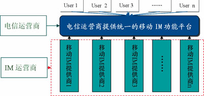 為了能夠使移動IM有效占據(jù)在未來競爭中的主動地位,運營商就必須在自有網(wǎng)絡(luò)上對移動IM功能進(jìn)行統(tǒng)一和標(biāo)準(zhǔn)化,并對其他的移動IM予以限制和管理,以便形成合力,實現(xiàn)其既定目標(biāo)。