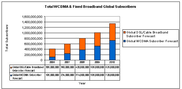 對于內(nèi)容提供商、集成商/ASP、廣播媒體和公司來說,若能好好發(fā)揮長處,3G和寬帶視頻與多媒體服務市場挑戰(zhàn)和多媒體機遇將是相當可觀的。2006年底全球3G/UMTS用戶將超過1億,截止到2011年這個數(shù)字將高達8.84億。今天,全球已有48個國家的110多個UMTS/WCDMA網(wǎng)絡在商業(yè)運作,所采用的WCDMA設施也超過350種。隨著170張商業(yè)證書在80個國家的授權(quán),未來幾年內(nèi)3G部署和發(fā)展的機遇將是巨大的。