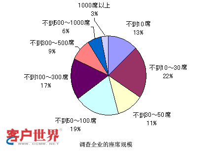 那么和剛才雜志社調(diào)查的結(jié)果是一樣的。這個(gè)數(shù)字又是政府方面調(diào)查的結(jié)果,他們調(diào)查的很細(xì),對(duì)很小規(guī)模的,比如說(shuō)1-4人的呼叫中心都進(jìn)行了調(diào)查,并且看到這種小規(guī)模的呼叫中心還占有很大的比例。可以看到,10人以下的呼叫中心可能在這個(gè)結(jié)果里面占了基本上高于50%,所以可能得到一個(gè)結(jié)論,就是在日本小型的呼叫中心非常多。