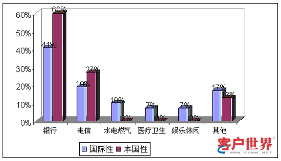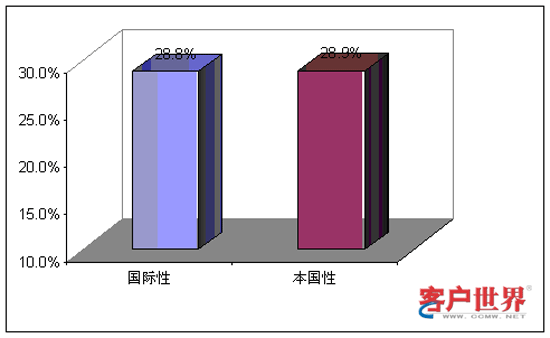 從業(yè)務(wù)功能看來,國際性呼叫中心和本國性呼叫中心承擔(dān)著不同的角色。9%的國際性呼叫中心和14%的本國性呼叫中心提供僅限于客戶服務(wù),例如賬號(hào)查詢和催費(fèi)收款。39%的國際性呼叫中心和59%的本國性呼叫中心專門展開網(wǎng)上營銷和銷售(外撥為主)。43%的國際性呼叫中心和29%的本國性呼叫中心同時(shí)承擔(dān)客戶服務(wù)和銷售功能。最后,我們調(diào)查到9%的國際性呼叫中心專門從事技術(shù)支持,而且這些中心專門為國際市場設(shè)立。服務(wù)功能上的差異會(huì)對商業(yè)定位和人力資源管理提出不同的要求。
