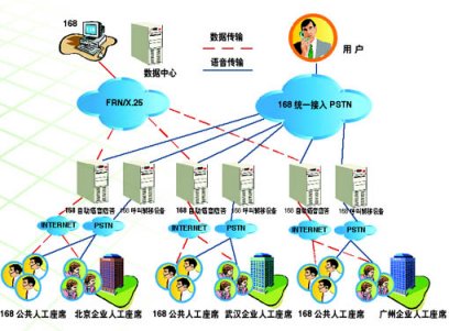 2、分布式接入服務(wù)功能:"企業(yè)客戶服務(wù)系統(tǒng)"為企業(yè)分布式的人工座席提供接入服務(wù)。當某個城市的消費者在使用168電話中自動語音應(yīng)答功能時,只要按"0"號鍵,電話就會被轉(zhuǎn)到企業(yè)在的當?shù)胤⻊?wù)人員座席上,由專業(yè)人員來提供服務(wù)支持。此種功能適合于在多個城市設(shè)立人工座席的企業(yè)用戶。