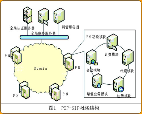 PN在地理上散布各處,邏輯上根據(jù)選用的P2P機制的不同可以是環(huán)形的(Chord協(xié)議)、矩陣的(CAN協(xié)議)、網(wǎng)狀的(Pastry協(xié)議和Tapestry協(xié)議);镜腜N至少包括注冊和代理兩種功能。為進行商業(yè)運營,可以部署全局認(rèn)證服務(wù)器、全局賬務(wù)服務(wù)器和網(wǎng)管服務(wù)器等等,用于管理全部的用戶和所有的PN。
