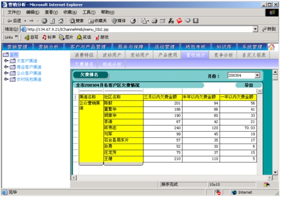 本系統(tǒng)通過對本地計費帳務(wù)系統(tǒng)、網(wǎng)間結(jié)算系統(tǒng)、1000號客戶服務(wù)系統(tǒng)、“九七工程”系統(tǒng)、資源管理系統(tǒng)的動態(tài)相關(guān)數(shù)據(jù)的提取,按日(天)記錄并分析開展?fàn)I銷服務(wù)工作所需的客戶基本資料、客戶關(guān)系資料、客戶收入信息、客戶消費行為信息、客戶變動信息、客戶障礙信息、客戶投訴信息、客戶競爭動態(tài)信息等支撐信息,指導(dǎo)各類客戶經(jīng)理開展有針對性營銷服務(wù)工作。