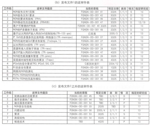 2005年5月之前,下一代網(wǎng)絡(luò)重點(diǎn)工作組已完成了計(jì)劃中的26個(gè)送審文件中的3個(gè)。所有的送審文件都必須指定專門(mén)的發(fā)布文件。遵循第13研究組的決定,下一代網(wǎng)絡(luò)重點(diǎn)工作組至少應(yīng)完成發(fā)布文件1的送審稿。表2給出了下一代網(wǎng)絡(luò)重點(diǎn)工作組按發(fā)布文件分類(lèi)的送審件。