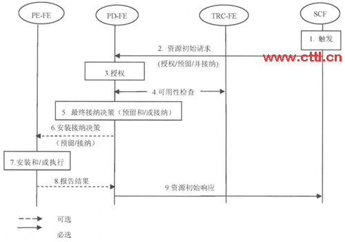 圖2 SCF發(fā)起QoS控制的授權(quán)、預(yù)留和接納流程