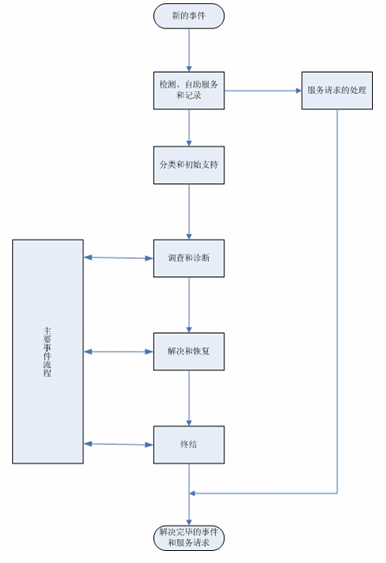 在記錄流程之后,事件將經(jīng)過分類和初始支持流程,而服務請求則被傳遞到“服務請求處理”流程。