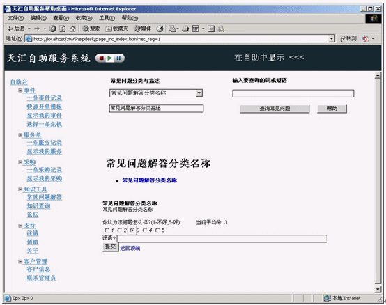 進入自助服務系統(tǒng)的模式確定了對查詢者可用的功能。如天匯幫助臺應提供標準 Web 界面和搜索引擎。