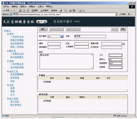 但是,隨著組織轉向自助服務,對復雜維護過程的需要將隨之出現(xiàn)。如果要采用自助服務,必須從一開始就做得很好。上圖為人性化的天匯幫助臺系統(tǒng)的自助服務功能界面設計。