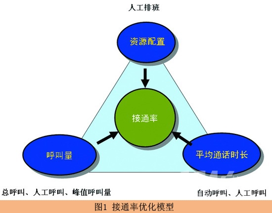 根據(jù)上面的分析,可以設(shè)計出呼叫中心接通率優(yōu)化的模型(圖1)。