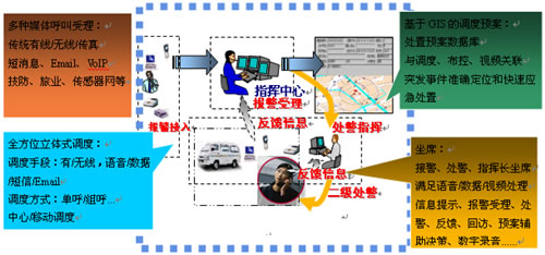 接處警應用系統(tǒng)是應急聯(lián)動中心的核心部分,系統(tǒng)在保證“先進、實用、可靠”的前提下,與全市應急聯(lián)動單位實現(xiàn)互聯(lián)互通、信息共享;把接處警系統(tǒng)與GPS、有無線通信、視頻監(jiān)控、預案指揮等技術(shù)系統(tǒng)有機的結(jié)合在一起,形成“以計算機網(wǎng)絡為基礎(chǔ),以有線、無線通信為紐帶,以接處警信息傳遞、處理為核心,以資源共享和計算機輔助決策為載體的綜合性系統(tǒng)工程”,從而提高應急聯(lián)動中心的指揮調(diào)度、輔助決策等綜合處置能力,滿足在復雜條件下指揮、調(diào)度、協(xié)調(diào)、處置城市不同種類和等級的突發(fā)事件的實戰(zhàn)需要。