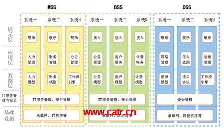 各大運營企業(yè)基本建成了較為完整的運營支撐系統(tǒng)的框架體系,功能點覆蓋了企業(yè)運營管理的各個方面,有力地支撐了從業(yè)務運營、客戶服務、市場營銷到網(wǎng)絡管理、企業(yè)信息化管理等各項工作。同時,也存在著諸如系統(tǒng)“遍地開花”、功能重疊等現(xiàn)象,這些都需要在今后的建設工作中逐步解決。