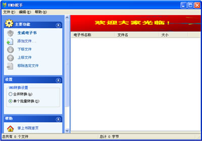 也有不少用戶利用UMD轉(zhuǎn)換工具將電子書轉(zhuǎn)換成UMD格式,但市場上的UMD轉(zhuǎn)換工具都不支持批量轉(zhuǎn)換功能,比如筆者最近想好好復(fù)習(xí)下英語。想將大量的英語資料制成手機電子書,在上下班坐車的時候?qū)W習(xí),使用普通的轉(zhuǎn)換器就會耗費許多時間。經(jīng)過筆者不懈的上網(wǎng)挖掘,終于發(fā)現(xiàn)了一個好東東。掌上書院推出了首款UMD手機電子書批量制作工具UMD舵手1.0beta,據(jù)介紹,UMD舵手是目前唯一款UMD手機電子書批量制作工具,最多可一次性同時轉(zhuǎn)換300本以上的圖書,為喜愛自己動手制作手機電子書的用戶提供了極大的方便,DIY個屬于自己的手機圖書館不再是夢想了。